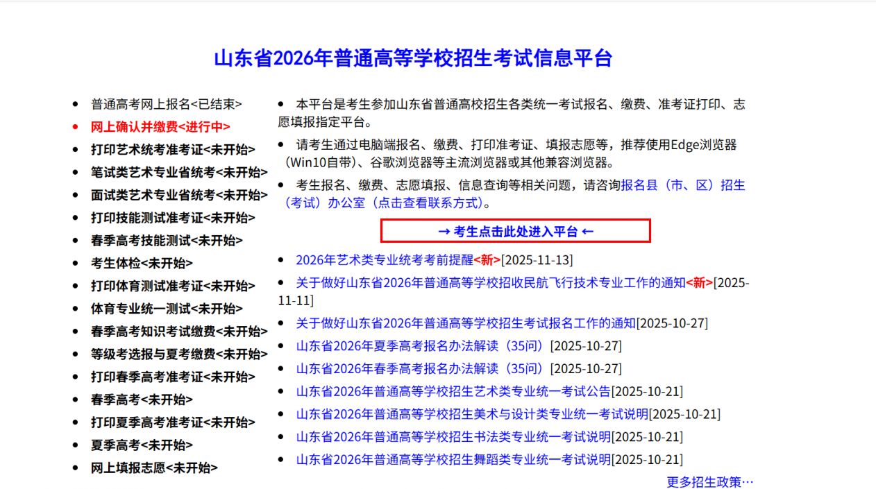 【导语】:2026山东高考缴费时间为2025年11月18日至22日(每天9:00~18:00),详见正文