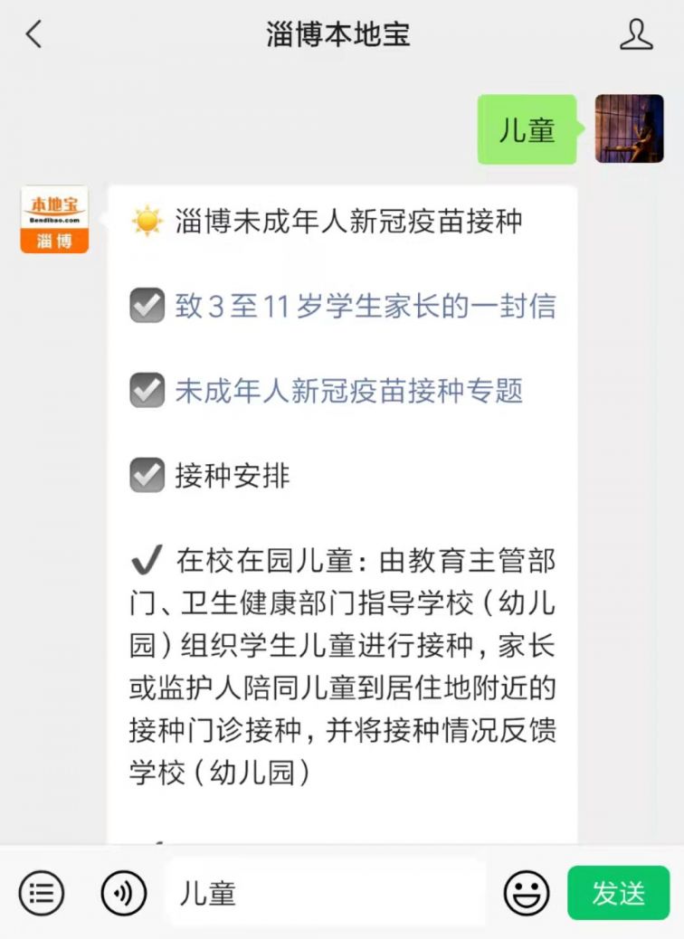 温馨提示:微信搜索公众号淄博本地宝,关注后在对话框回复【儿童】可获淄博未成年人接种新冠疫苗时间安排、怎么接种、接种疑问解答等信息。